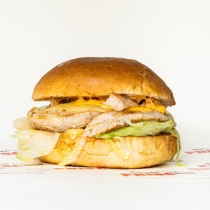 Cotoletta di pollo artigianale, cheddar, bacon, insalata, pomodoro, maionese, salsa bbq